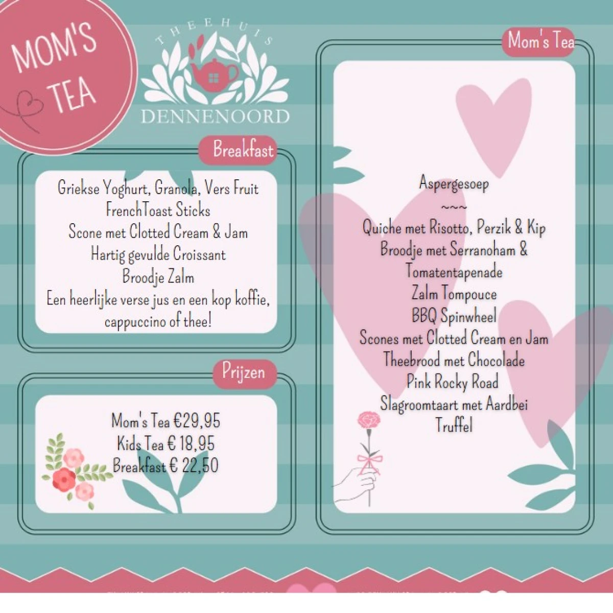 Laat je verwennen met een tafel vol hartige en zoete lekkernijen, heerlijke theesoorten en natuurlijk een feestelijke sfeer die helemaal in het teken staat van de aankomende kleine spruit. Of je nu kiest voor een intieme setting of een gezellig grote groep, wij zorgen voor een onvergetelijke middag vol gezelligheid en smaak.