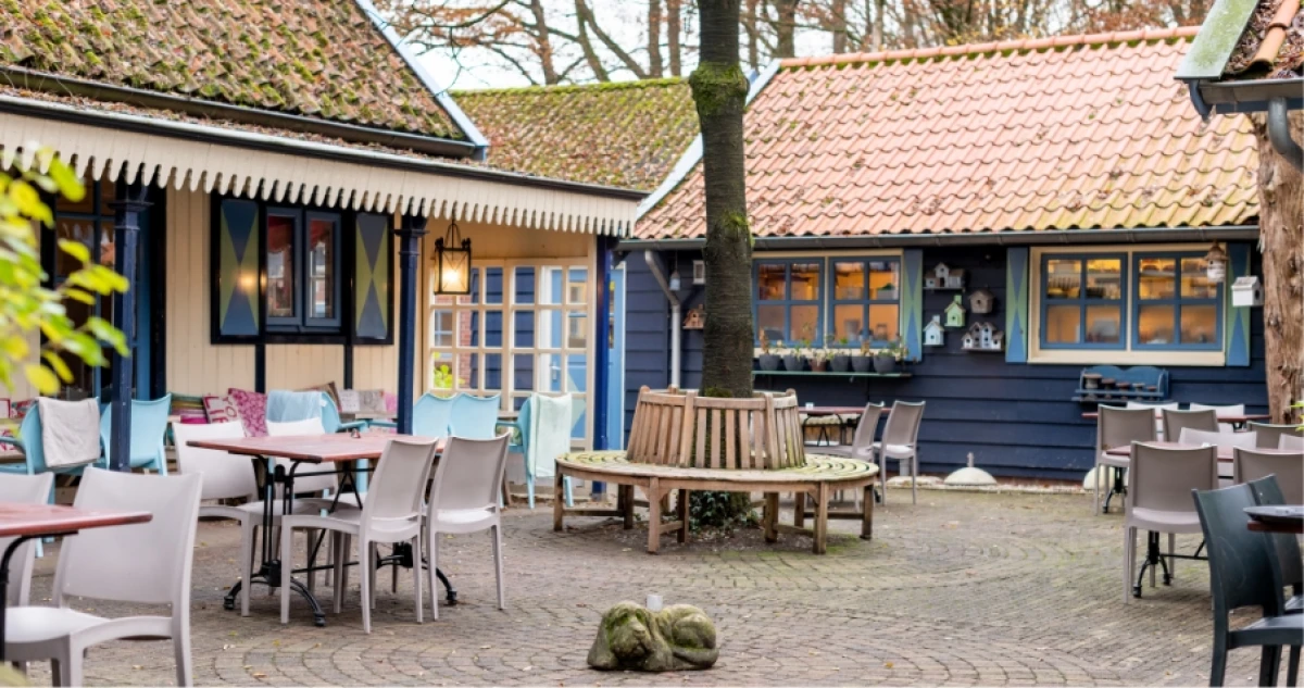 met de vakantiehuisjes waarna zij een vaste woonbestemming hebben gebouwd op het complex.