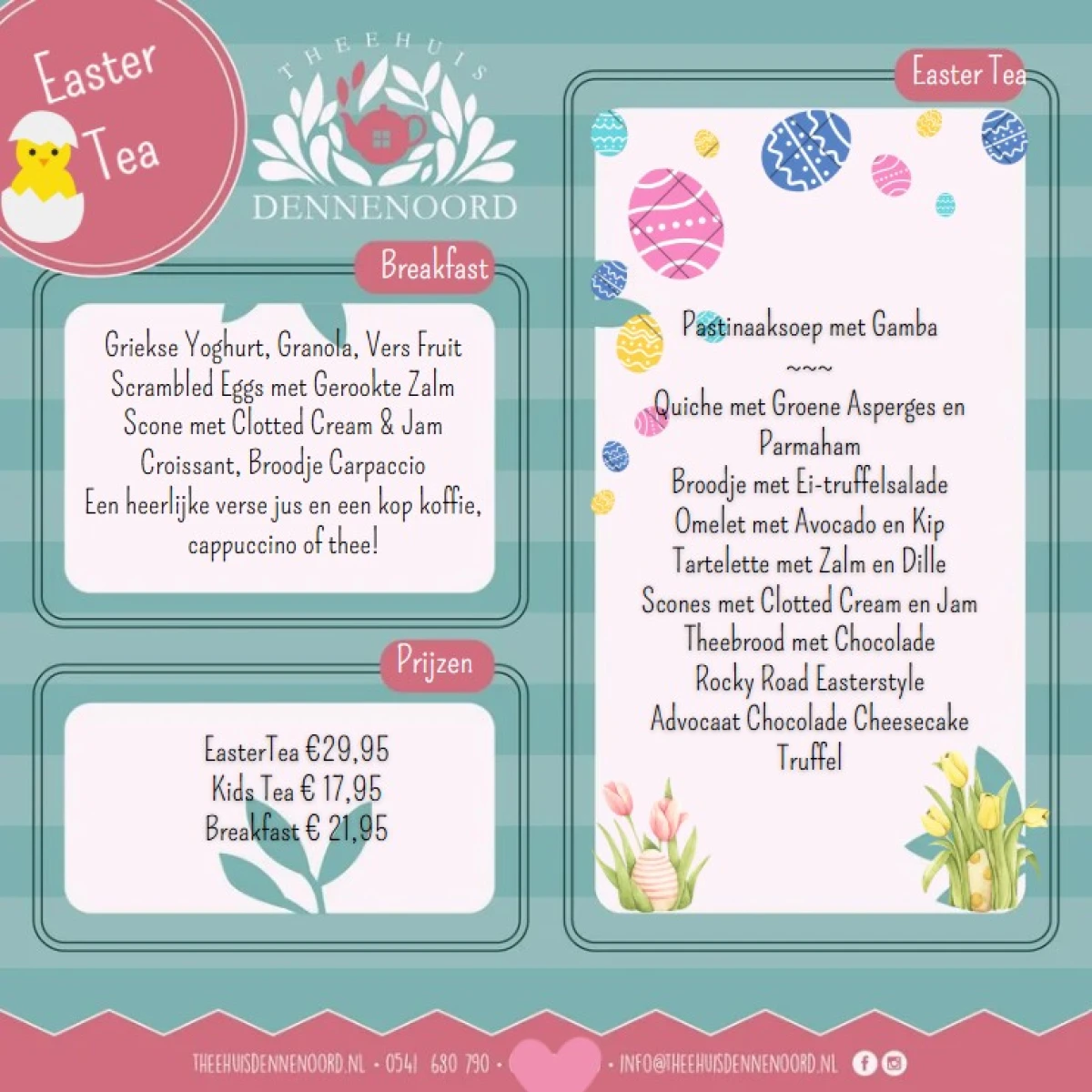 Laat je verwennen met een tafel vol hartige en zoete lekkernijen, prachtige theesoorten en natuurlijk een feestelijke sfeer die helemaal in het teken staat van de aankomende kleine spruit. Of je nu kiest voor een intieme setting of een gezellig grote groep, wij zorgen voor een onvergetelijke middag vol gezelligheid en smaak.
