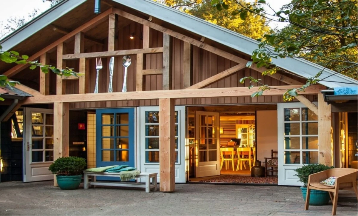 Het Jachthuisje is gelegen aan ons terras en beschikt over een kleine veranda. In het Jachthuisje kan met maximaal 30 gasten plaatsgenomen worden. Deze ruimte is geschikt voor verjaardagen, een babyshower of gewoon gezellig samen zijn met heerlijk eten. Tevens kan deze ruimte gereserveerd worden voor zakelijke besprekingen om los te komen van de formele bedrijfssetting.