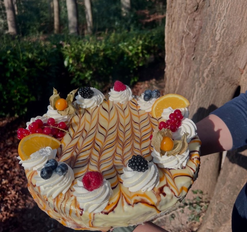 Onze heerlijke, huisgemaakte carrot cake! Geschikt voor 12/13 personen.