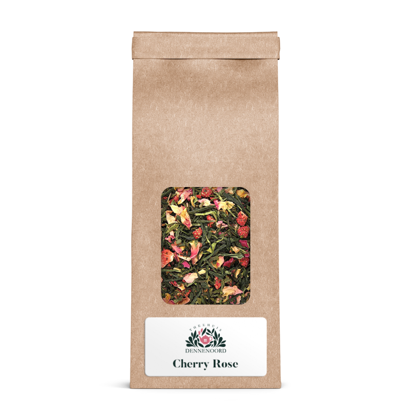 Melange van rozenblaadjes, kersen en aardbeien. Een absolute must voor de liefhebber van groene thee