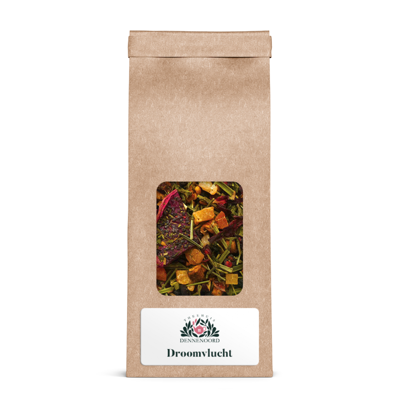 Melange van papaya, schijfjes drakenvrucht, rozenbottel, appel, meloen, hibiscusbloesem, lemongrass, schizandrabessen en vlierbessen. Fruitig en bijzonder van smaak, met een mooie rode kleur